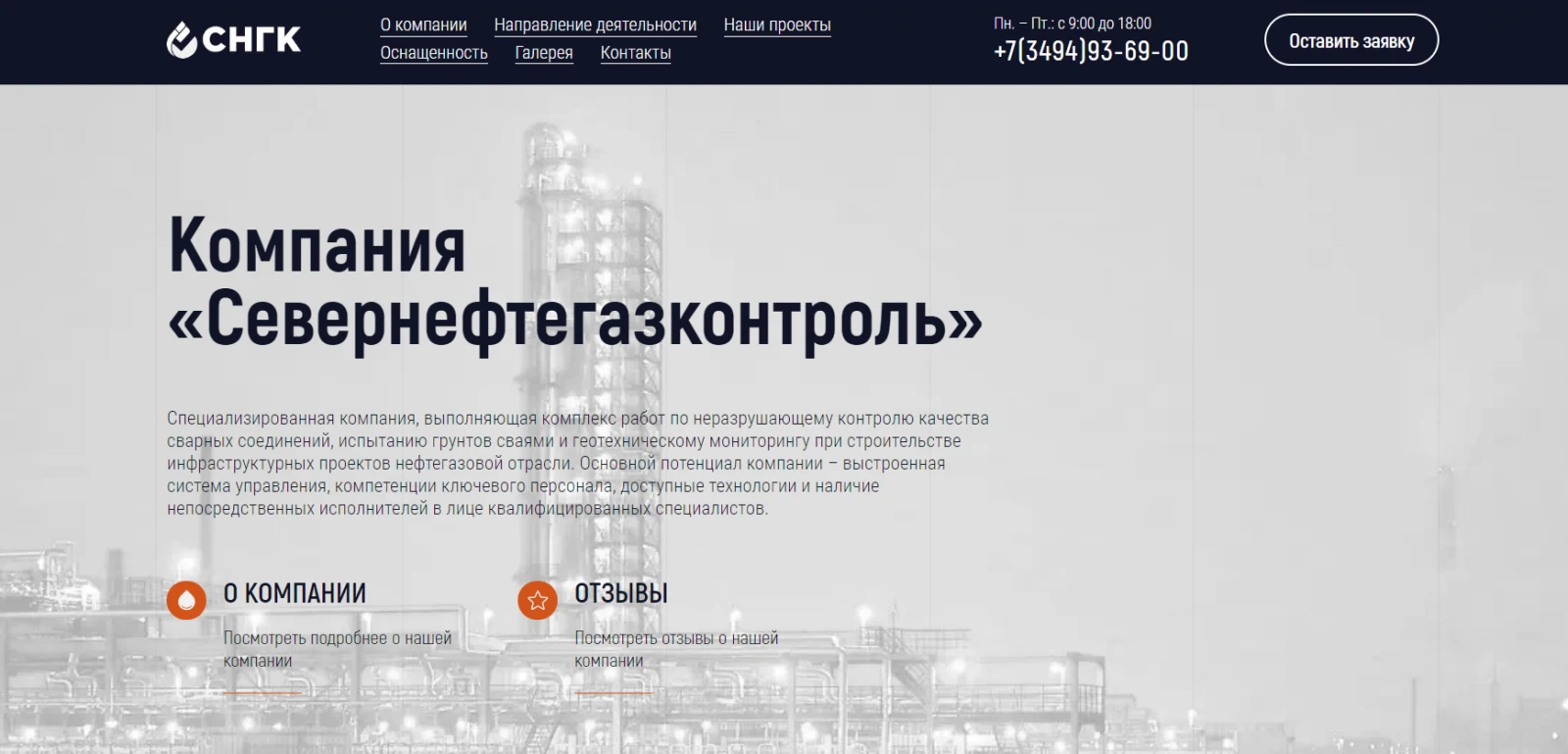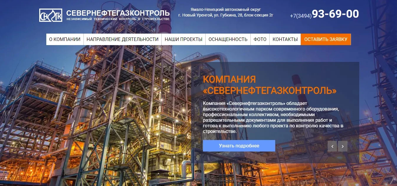 В 2017 году разработали уникальный дизайн и сайт, для северной компании "СЕВЕРНЕФТЕГАЗКОНТРОЛЬ". Сайт нужен чисто для презентационных целей, участия в тендерах